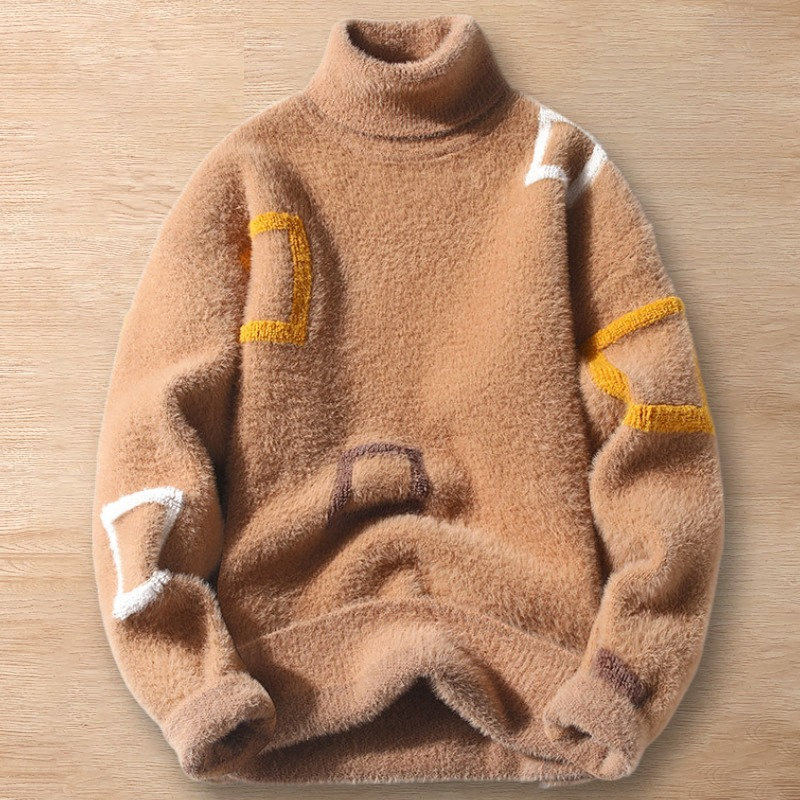 - Y246-2XL カーキ 新品DCKMANY ウール混 セーター シャギーニット タートルネック プルオーバー 秋冬 厚手 暖かい 長袖 メンズ トップス