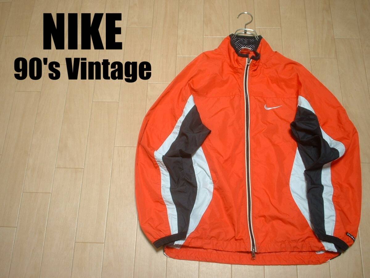 - 90sビンテージNIKEスウッシュ刺繍CLIMA-FITナイロンジャケット海外S(JPN-M程)ウインドブルゾン正規ナイキ銀タグトラックジャージトップACG
