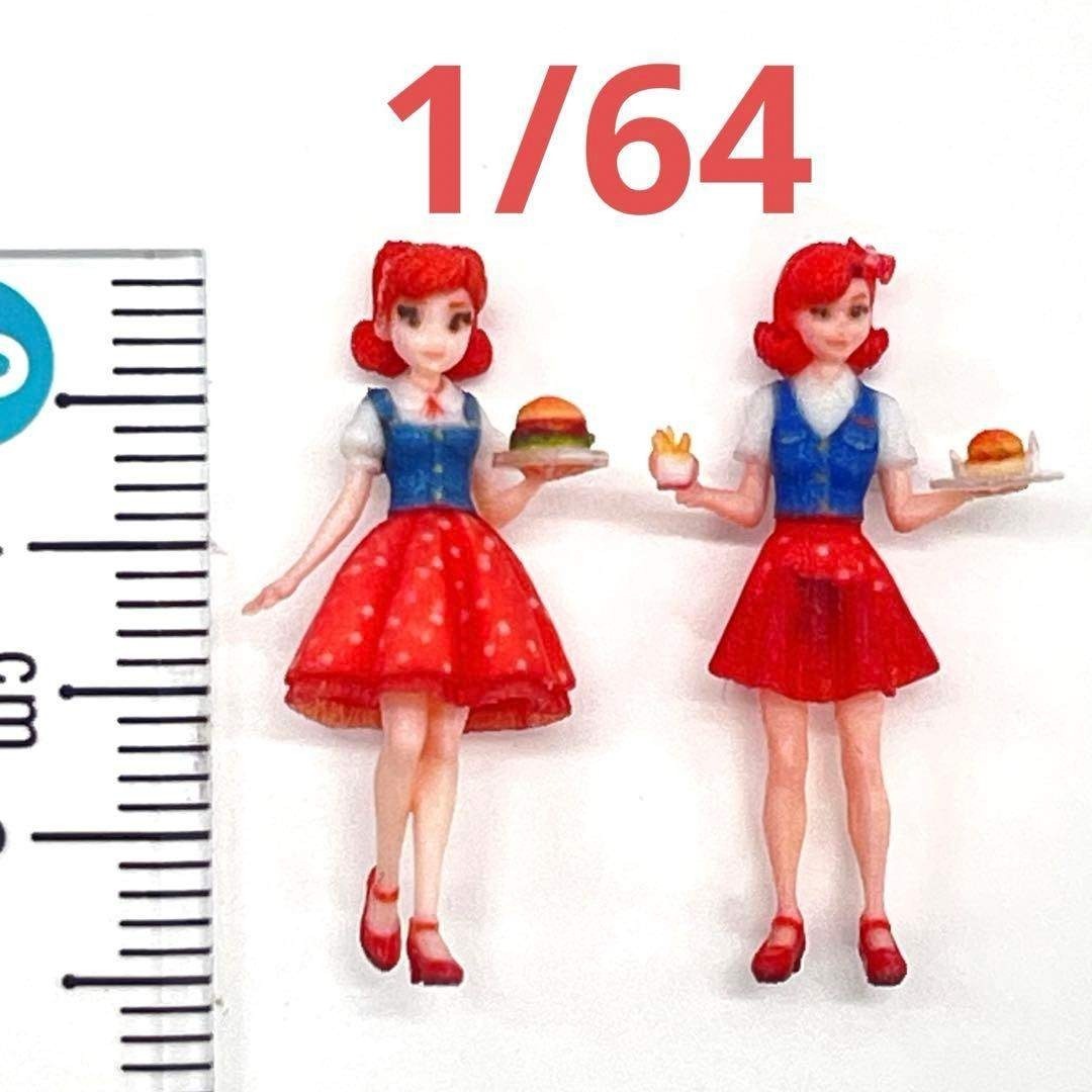 - 1/64 ウェイトレス フィギュア2体 ダイナー ミニチュア ジオラマ ミニカー ミニチュアイメージ リアルフィギュア 完成品