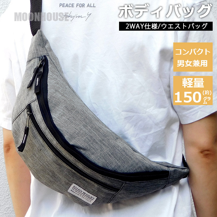 > 送料無料 2WAY ウエストバッグ メンズ レディース ボディバッグ ショルダーバッグ ウエストポーチ 斜め掛けバッグ 斜めがけバッグ グレー■