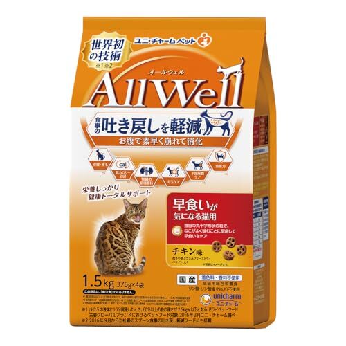 - チキン 1.5kg [吐き戻し軽減] All Well(オールウェル) キャットフード ドライ [早食いが気になる猫用] チキン