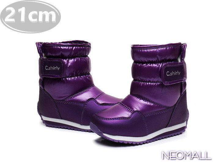 - キッズ スノーシューズ 【954】 21.0cm パープル ムートンブーツ スニーカー ウィンターブーツ 裏起毛 防水 防寒 防滑 冬用靴 綿靴