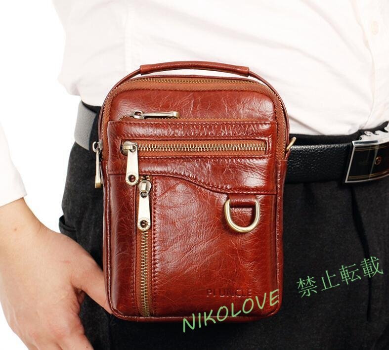 - ☆新品ウエストバッグ 2WAY 本革牛革 メンズベルトポーチ スマホポーチ ショルダーバッグ 大容量 多機能 ぶらうん