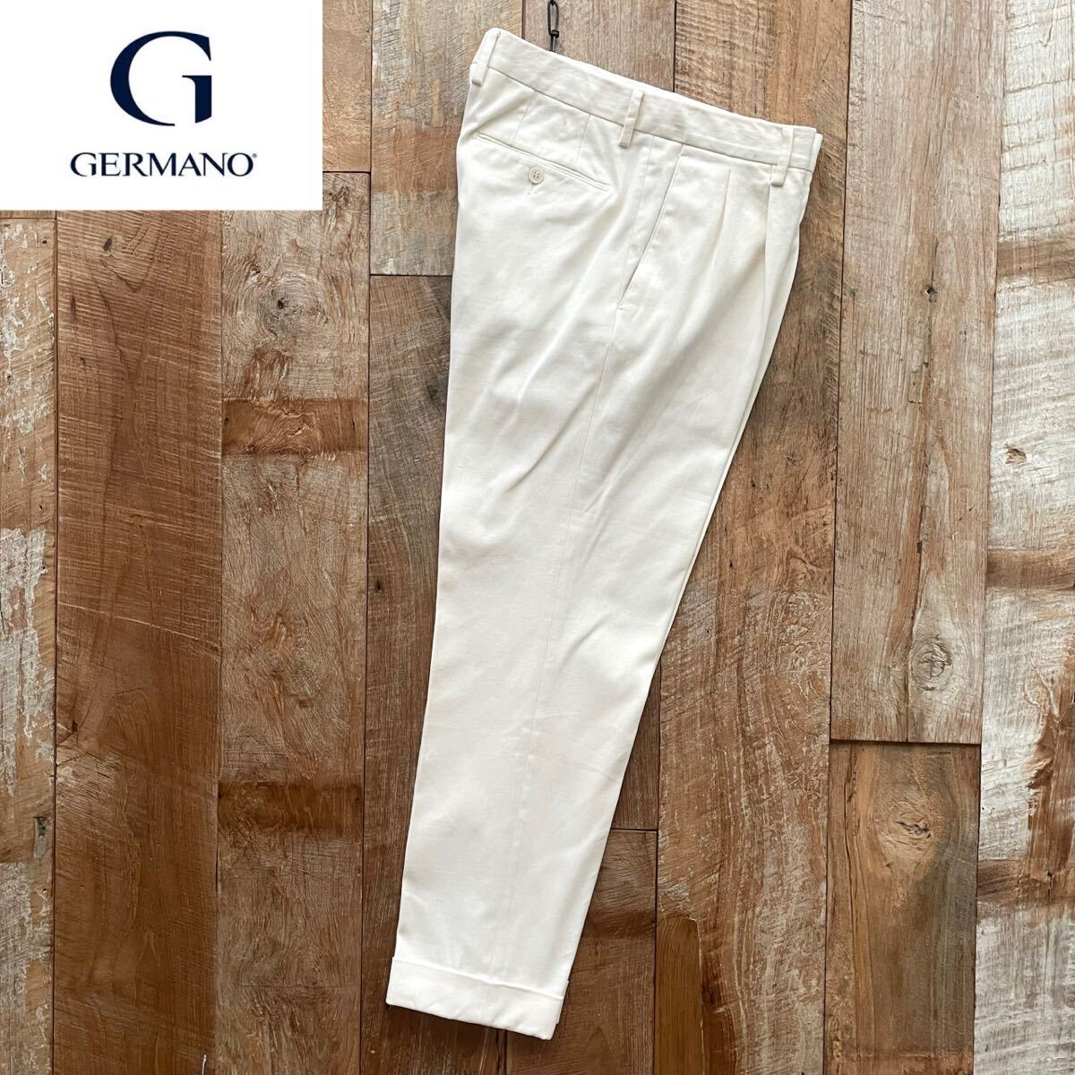 - 【極美品】GERMANO ジェルマーノ 2プリーツ 2タック テーパード コットン スラックス パンツ 50 アイボリー BEAMSF取扱