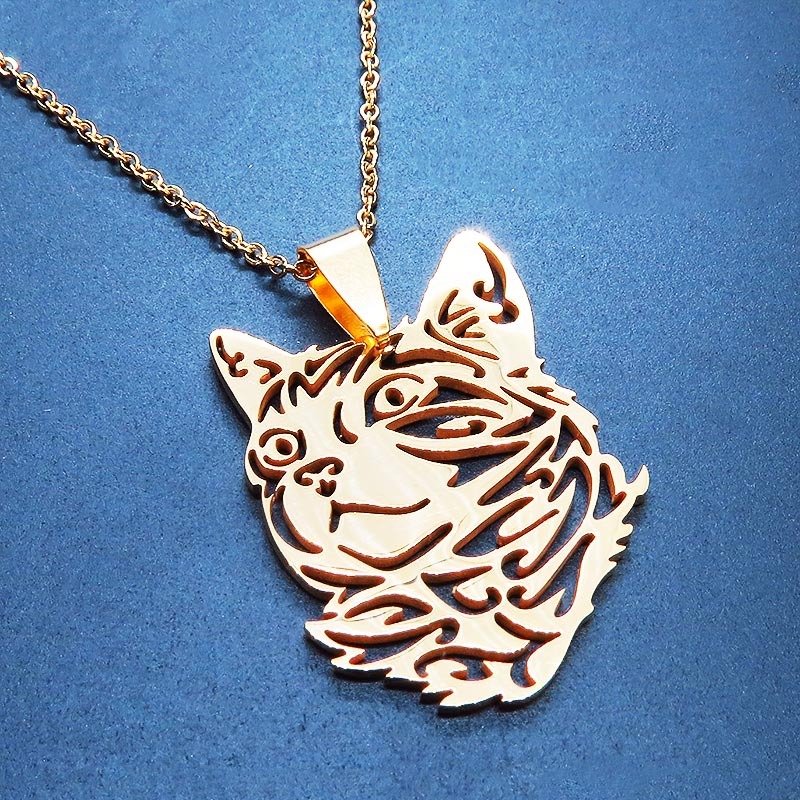 - ゴールドカラー リアルな猫フェイスモチーフのペンダント・ネックレス ダイカット スレンレス製 メンズ レディース