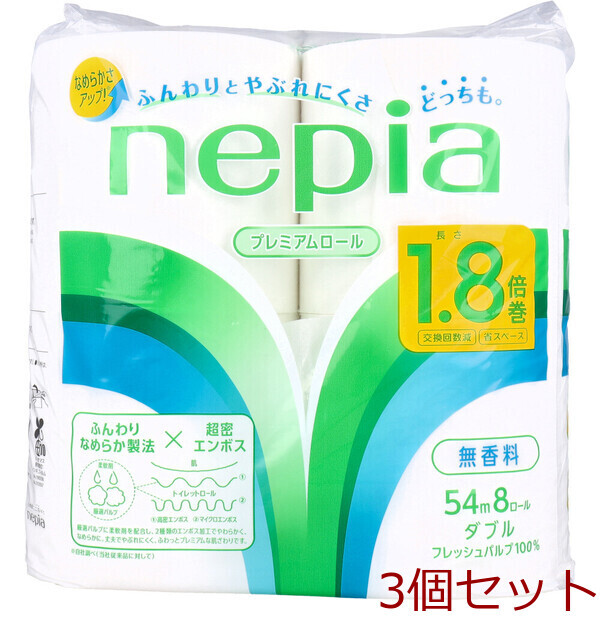 - トイレットペーパー ネピア トイレットロール 1.8倍巻 無香料 ダブル 54m×8ロール 3個セット