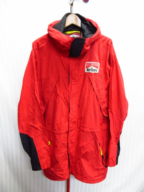 > Marlboro マルボロ 90sビンテージ ナイロンジャンパー メンズF L XL SIZE 赤黒 タバコ 企業 ウインドブレーカー マウンテンパーカー10211