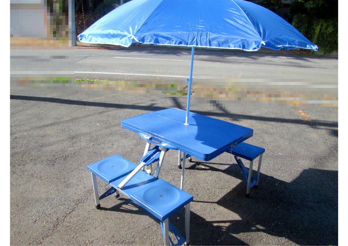 - 《510108》レジャーテーブルセット / ピクニックテーブル NE-1371 パラソル付 一体型収納 アウトドア