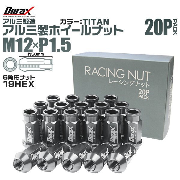 - Durax レーシングナット M12 P1.5 ホイールナット 貫通 50mm チタン 20個 アルミ ホイール ナット トヨタ 三菱 ホンダ マツダ ダイハツ