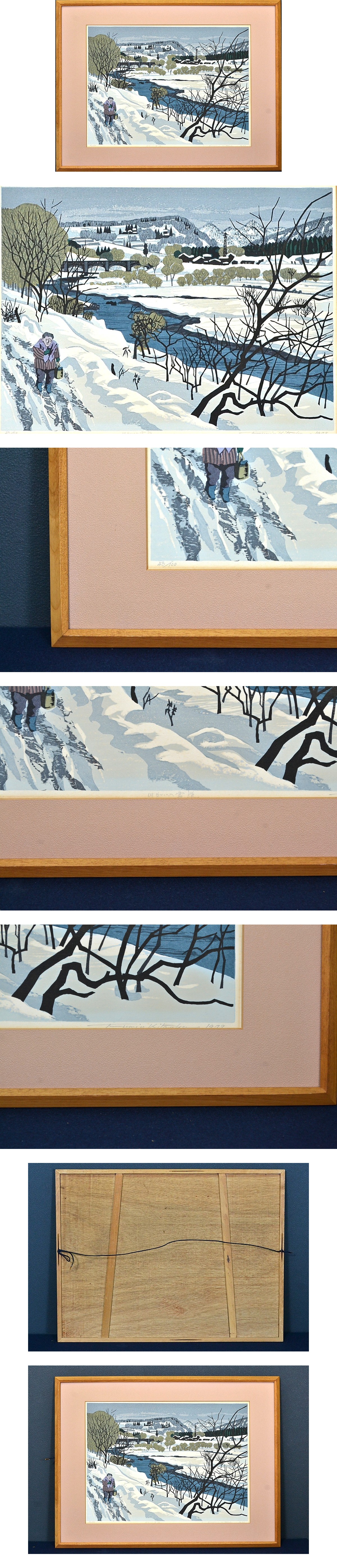 - 北岡文雄 中国木刻木版画「川沿いの雪道(43/100)1979年」真作 東京生 藤島武二・平塚運一師事 一木会 現代版画