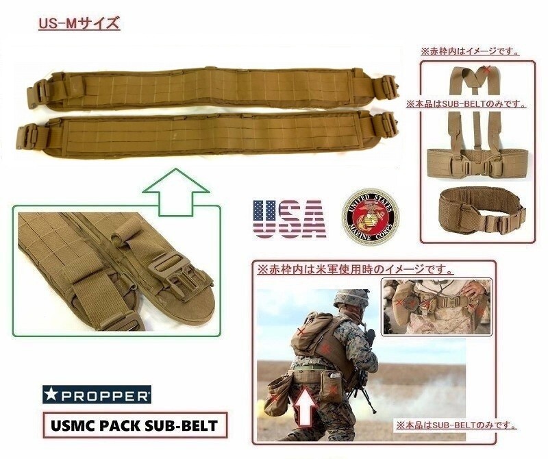 - #【米軍放出品】USMC MOLLEパッド付タクティカルベルト MサイズSUB BELT コヨーテブラウン コンバットベルト サバゲー(60)HJ22SK-W#25