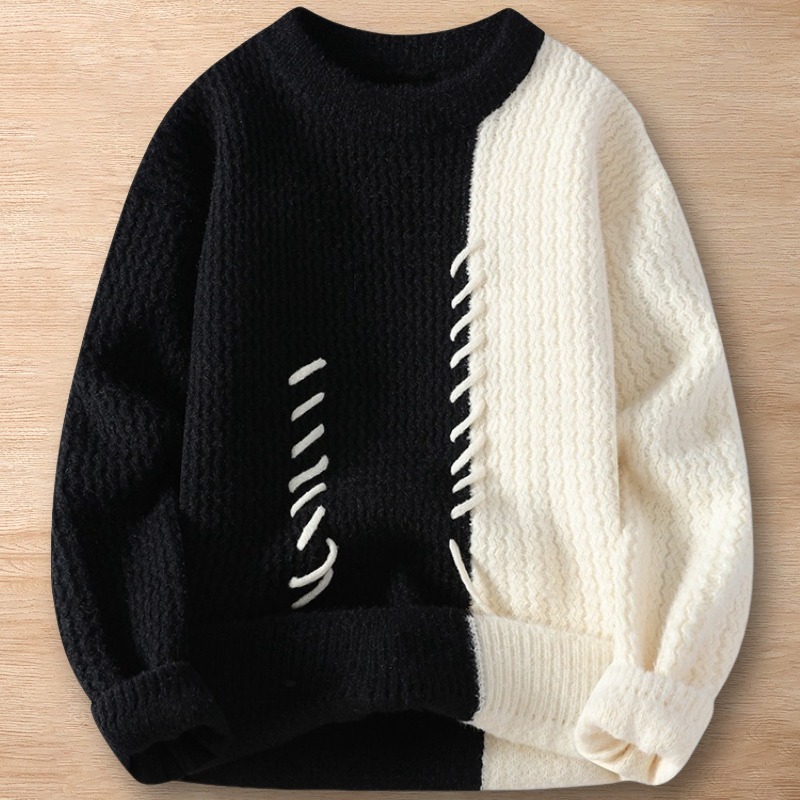 - Y273-XL ブラック 新品DCKMANY ウール混 セーター ラウンドネック 編みニット 配色 厚手 暖かい 長袖 メンズ プルオーバー 秋冬トップス