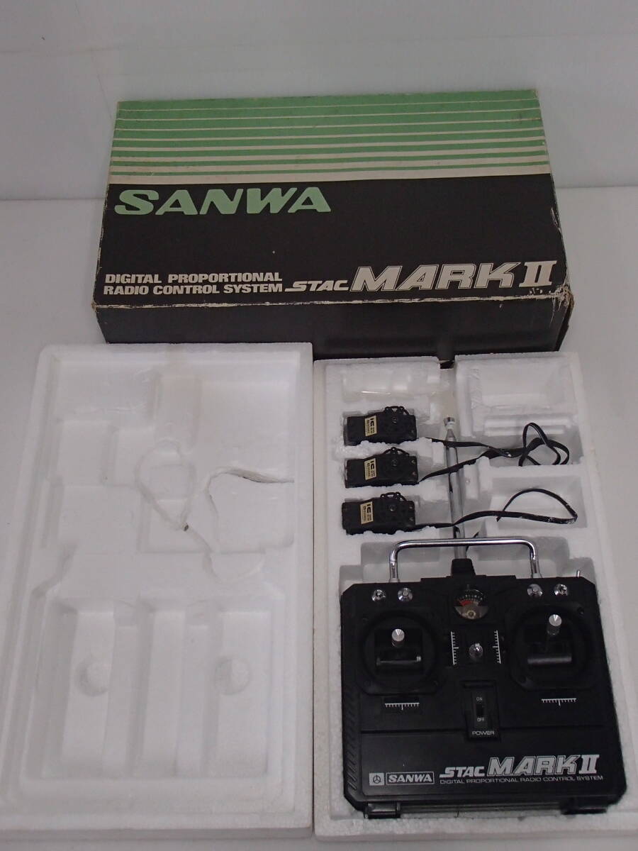 - ●○【1円】SANWA/サンワ STAC MARKⅡ 5KR AMプロポ サーボ(SM-394)×3付き 送信機 受信機 動作未確認現状品 箱付き 当時物○●