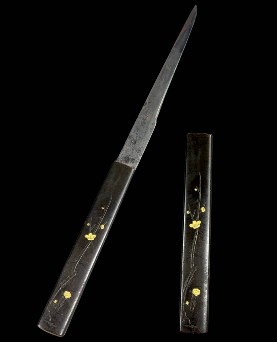 - 【偲】金象嵌 江戸時代 鍔 鐔 小刀 小柄 刀装具医『梅花』 骨董 日本刀/刀装具/武具/骨董/古美術/美術品/時代物 r-1013