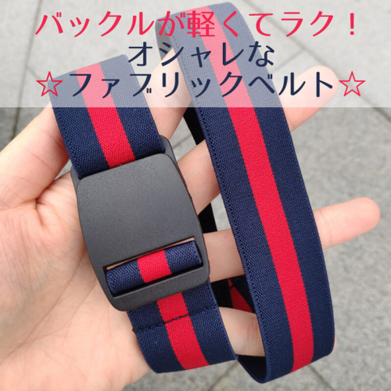 - 221【 ネイビー × レッド × ネイビー 】プラスチックバックル ベルト 調節可能伸縮性ウエストバンド