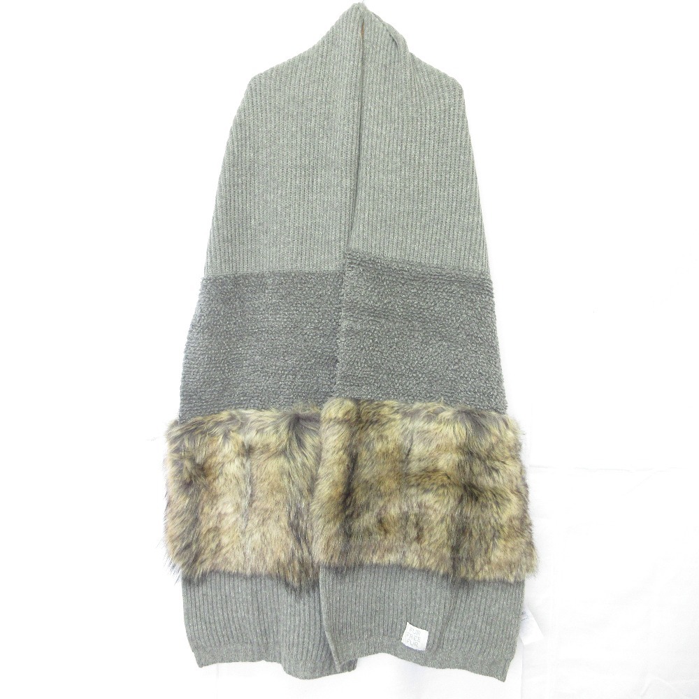 - 美品 STELLA McCARTNEY ステラマッカートニー エコファー ニット ロングマフラー ストール グレー