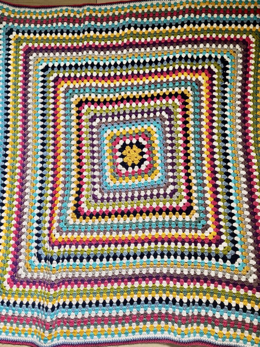 > ☆ アクリル毛糸 ハンドメイド マルチカバー ブランケット カラフル 手編み ひざ掛け かぎ針編み☆