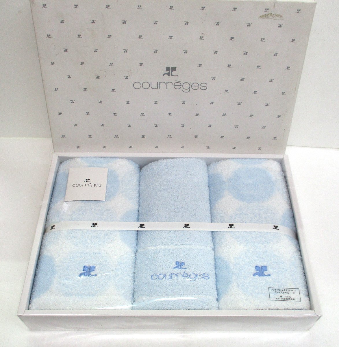 - タオルセット クレージュ courreges ウォッシュタオル フェイスタオル ピュアドット 56-0509251 小原 綿100% 未使用 101900 ☆