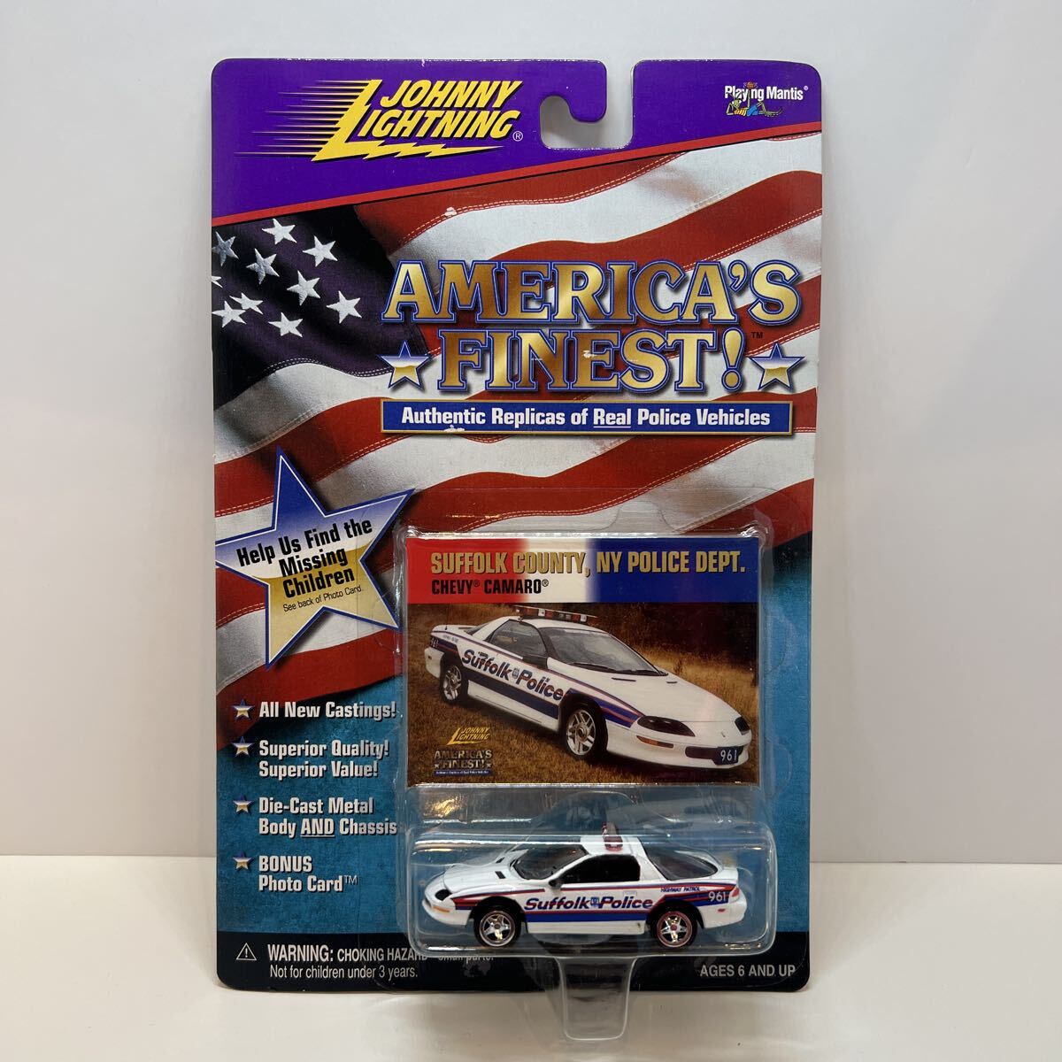 - 未開封 ジョニーライトニング 1/64 シボレー カマロ ニューヨーク サフォーク 警察 パトカー 行方不明児カード America's FINEST ミニカー