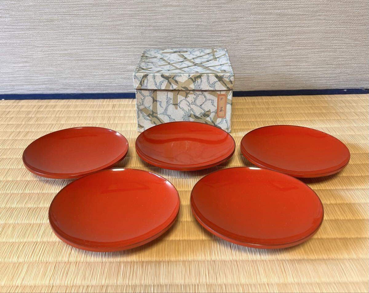 - 【引盃五客】木製盃 漆器 朱塗 無地 酒器 茶事 茶道具 懐石道具
