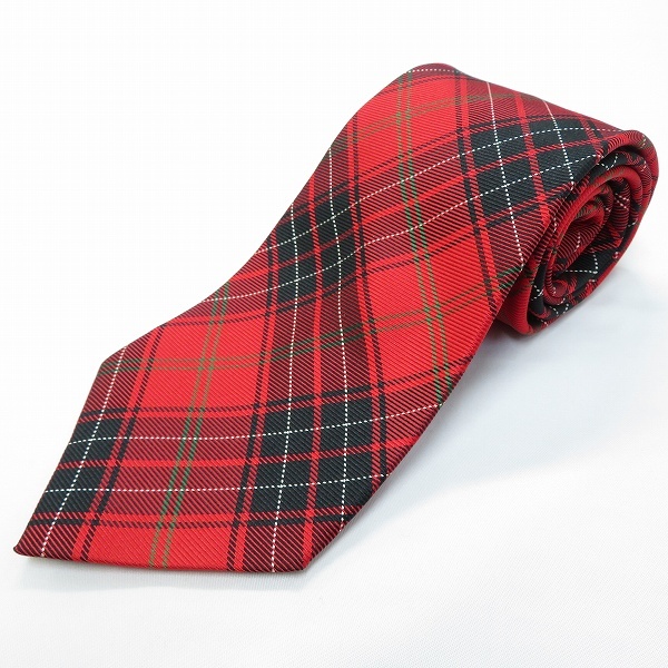 - #ae バーバリー BURBERRY ネクタイ 赤 黒 緑 白 チェック柄 タータンチェック シルク 日本製 メンズ [945285] k01