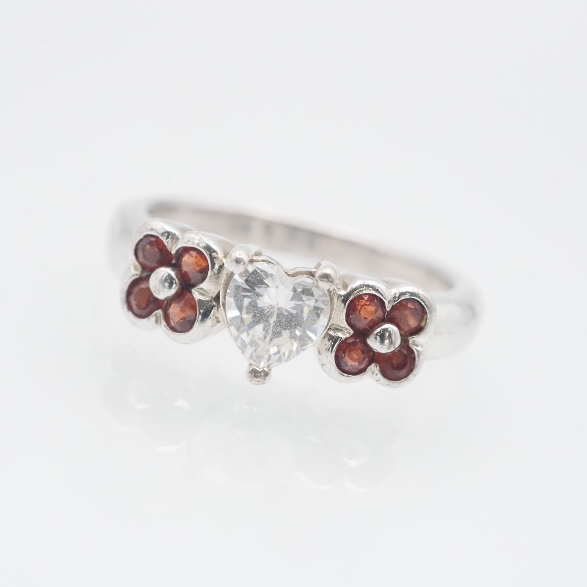 > H101 ダイヤモンド風 ガーネット 925刻印 リング ハート フラワー デザイン シルバー 指輪 1月誕生石 13号