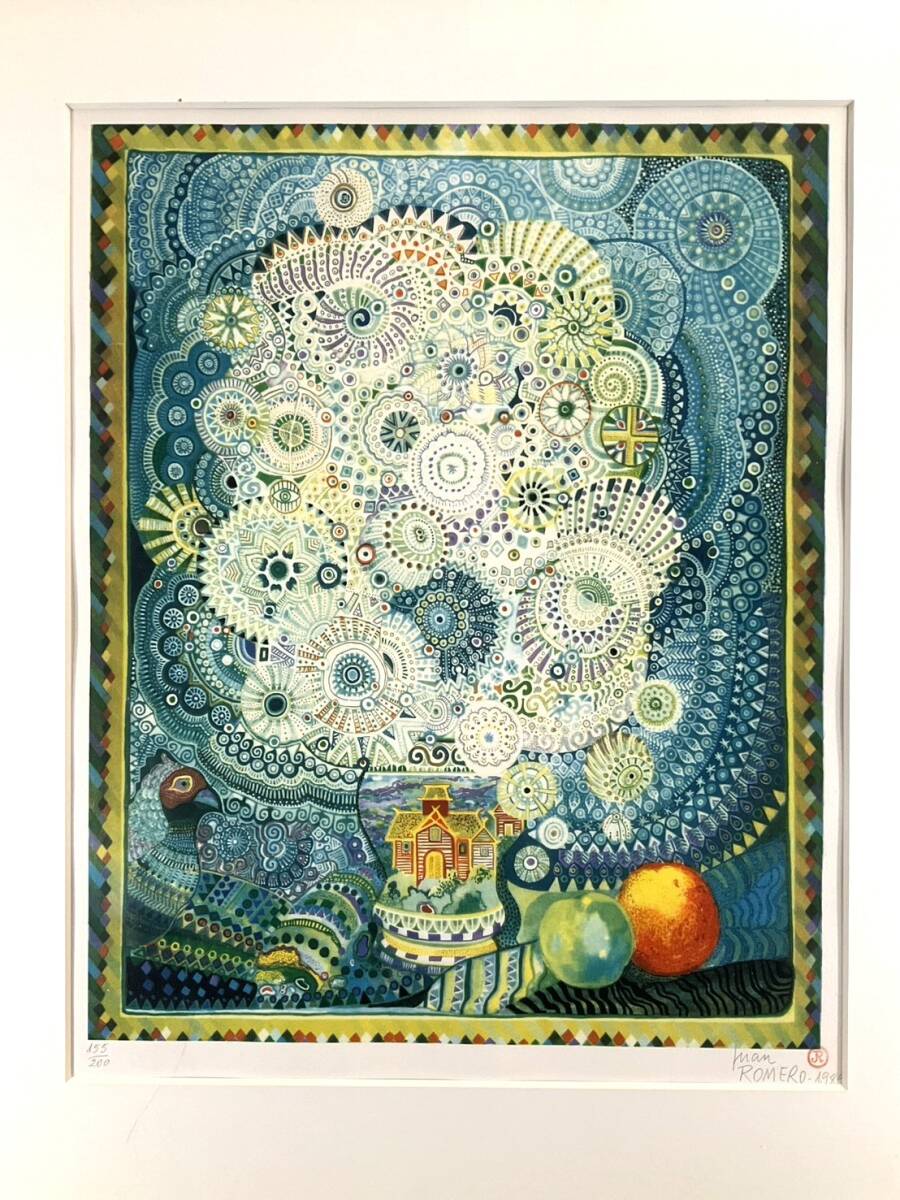 真作■リトグラフ■ホアン・ロメロ・Juan・Romero■『グラウッド・ブーケ』■ファンタジーな雰囲気の逸品■額付絵画 1e