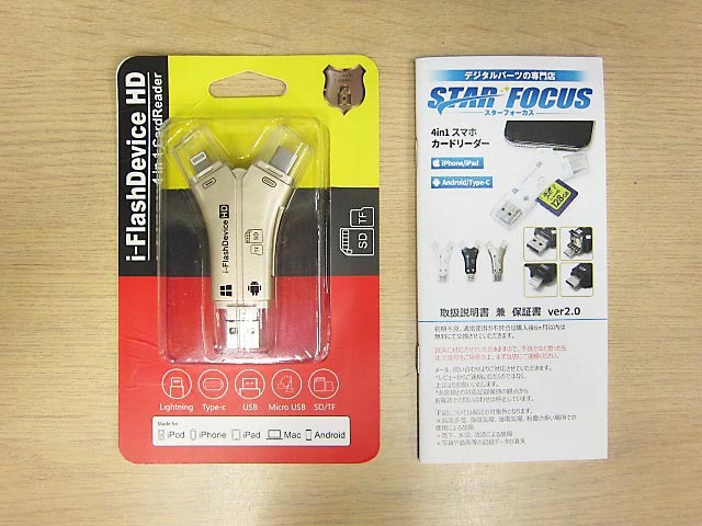 > 【未使用品】 4in1 カードリーダー SDカード Lightning USB Micro USB Type-C ゴールド