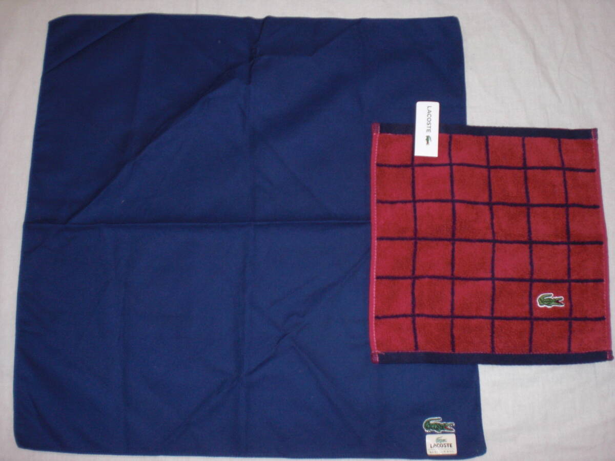 - LACOSTEラコステ・紺 ハンカチ 未使用タグシール付+赤 ハンドタオル 未使用タグ付