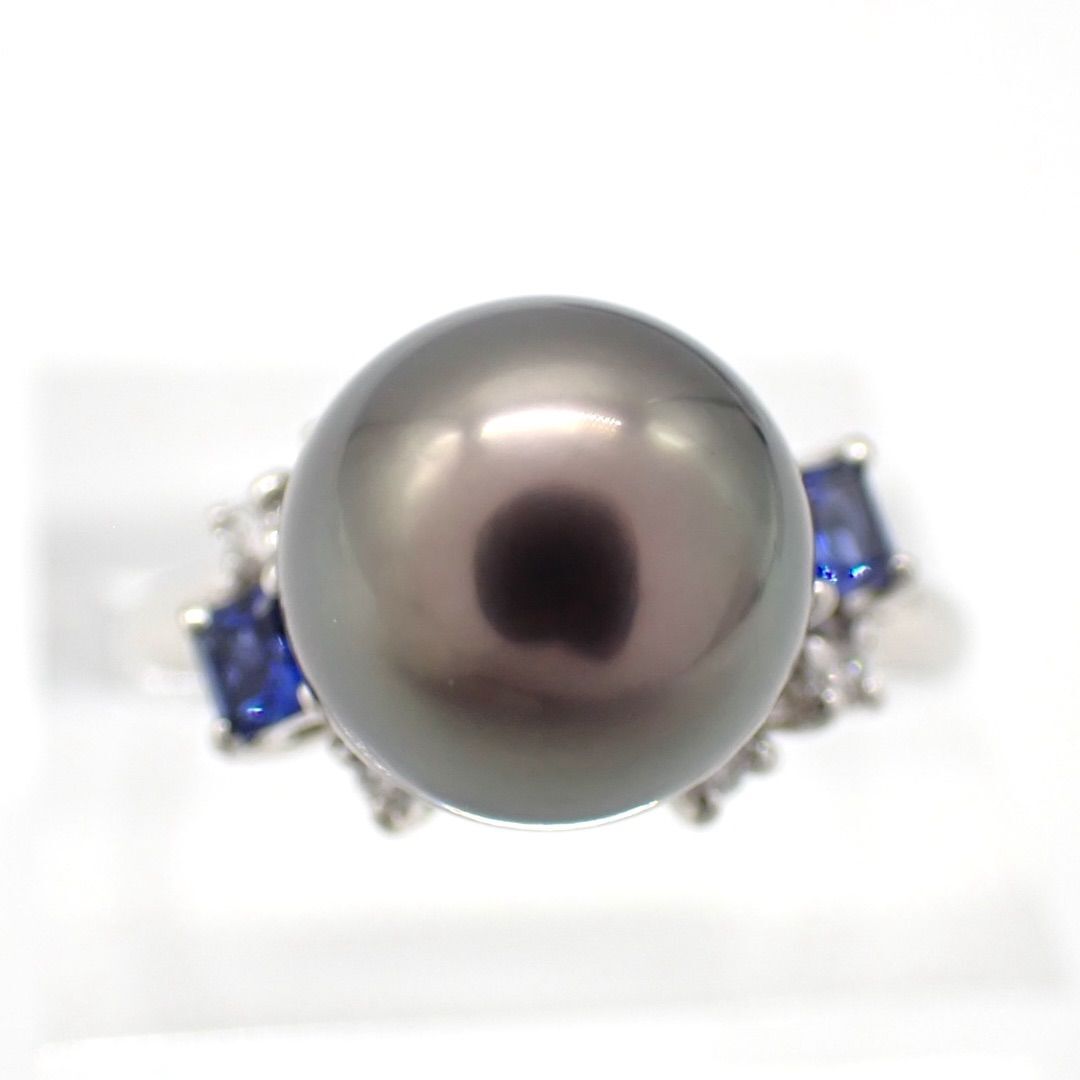 > 保証書 箱 TASAKI 田崎真珠 タサキ 黒蝶真珠 パール 10mm サファイア ダイヤ ダイヤモンド 0.12ct リング 指輪 プラチナ 14号 Pt900 4321
