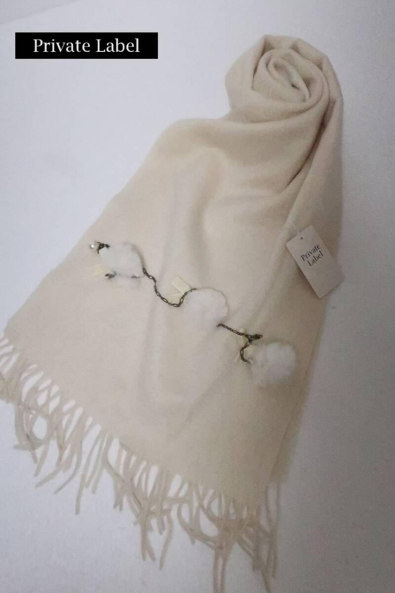 > 新品 プライベートレーベル PRIVATE LABEL カシミヤ 100% リボン付き マフラー ストール 2PL61118 ホワイト系