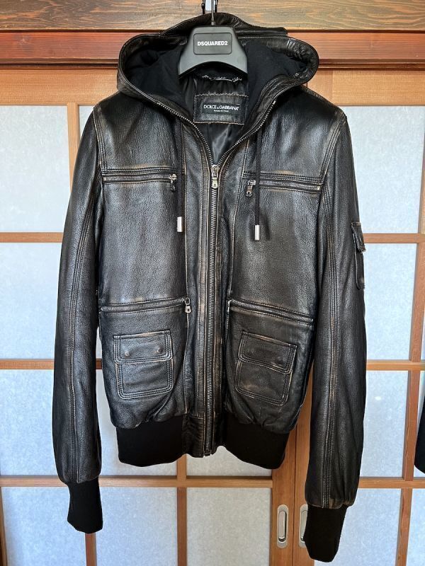 - DOLCE&GABBANA マルチポケット ヴィンテージ 中綿入りシープレザーパーカー 44