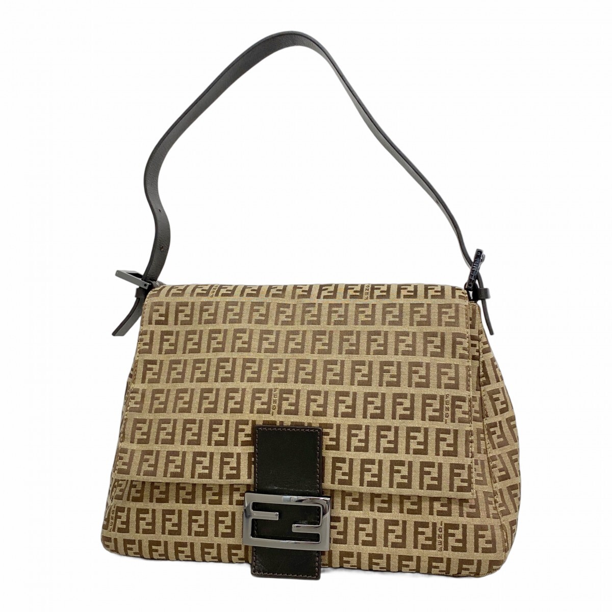 - 【5md4339】フェンディ ショルダーバッグ ズッキーノ マンマバケット ナイロンキャンバス ブラウン シルバー金具【中古】レディース