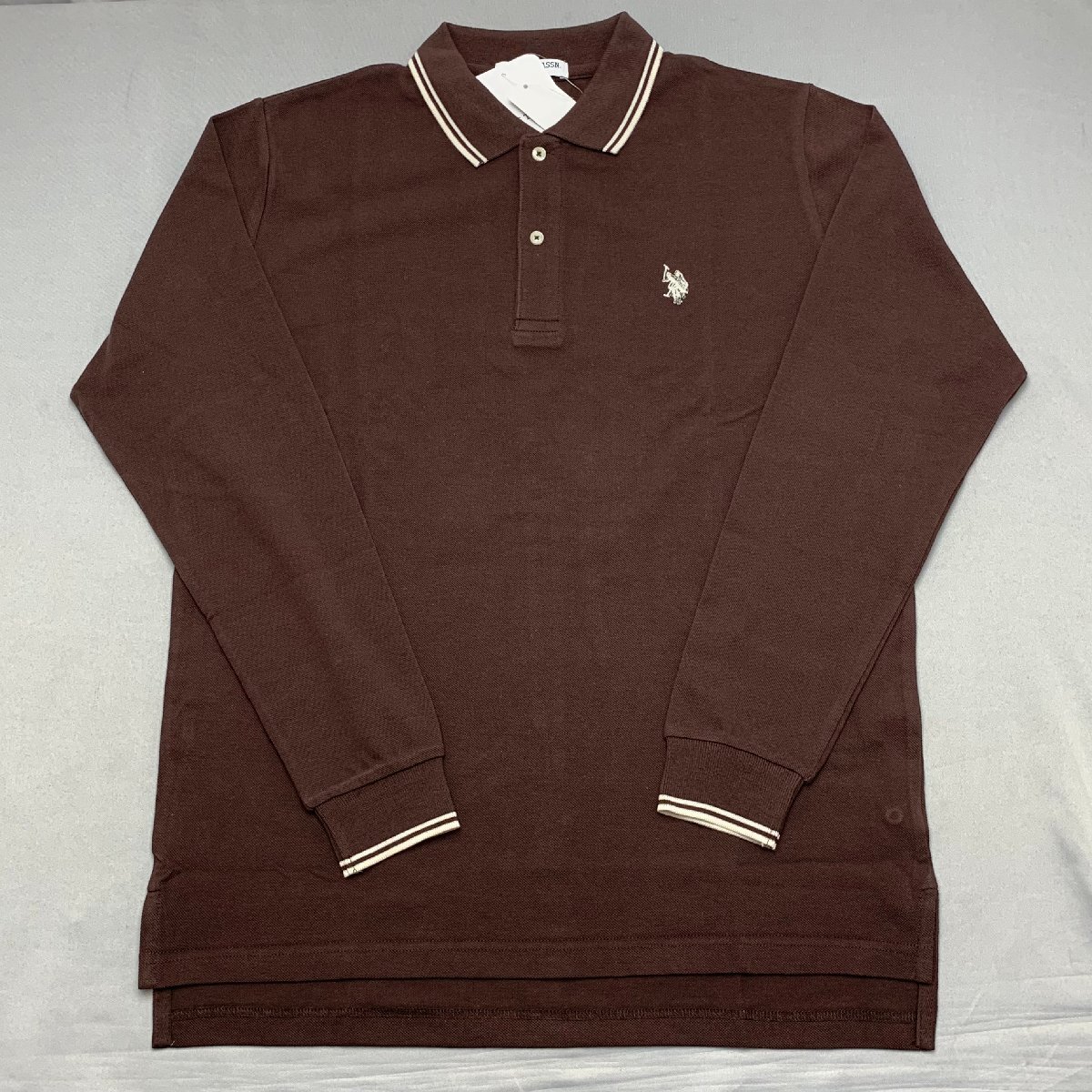 > 【送料無料】【新品】US.POLO.ASSN メンズ長袖ポロシャツ(コットン100% ゆったりタイプ) M ダークブラウン★43108