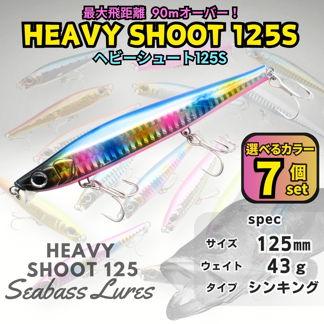 - 【送料無料】ヘビーシュート125S 43g 7個セット シーバスルアー ヘビーシンキングペンシル ヘビーショット好きに!青物対応 ジグミノー