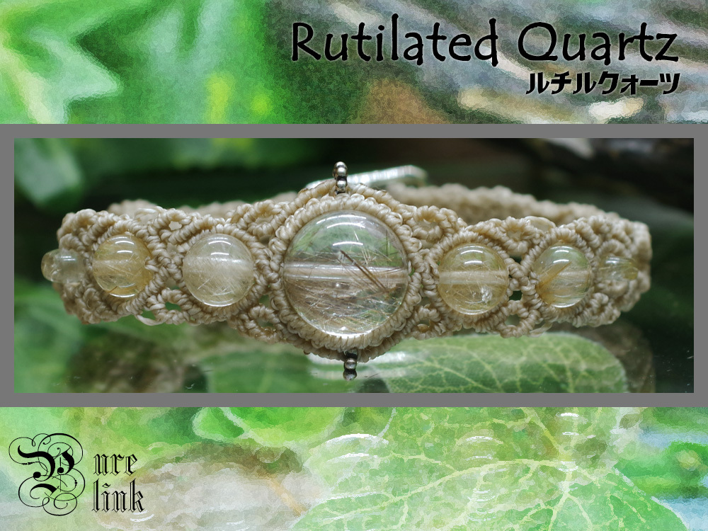 > 金色に輝く『ルチルクォーツ(Rutilated Quartz)』マクラメ編みブレスレット《ハンドメイド/尾錠タイプ》