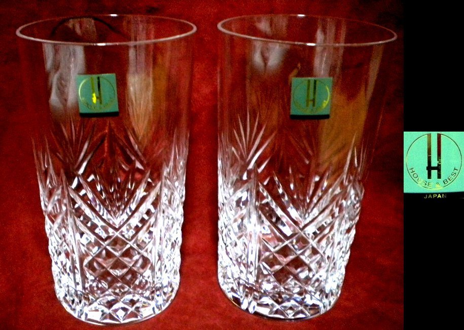 - 売切 HOYA クリスタル カットグラス 容量大290cc 2客組 纏購入特典有 A/C 寸法φ上61/下58×H121mm、重量240g、口元厚1.4mm、底厚12mm
