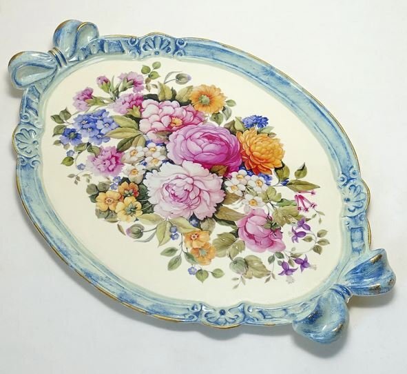 - イタリア製 輸入雑貨 トレー お盆 花柄 ピオニー ブルー リビングスタジオ 直輸入 アンティーク ロココ フィレンツェ ISP-2125GI 送料無料