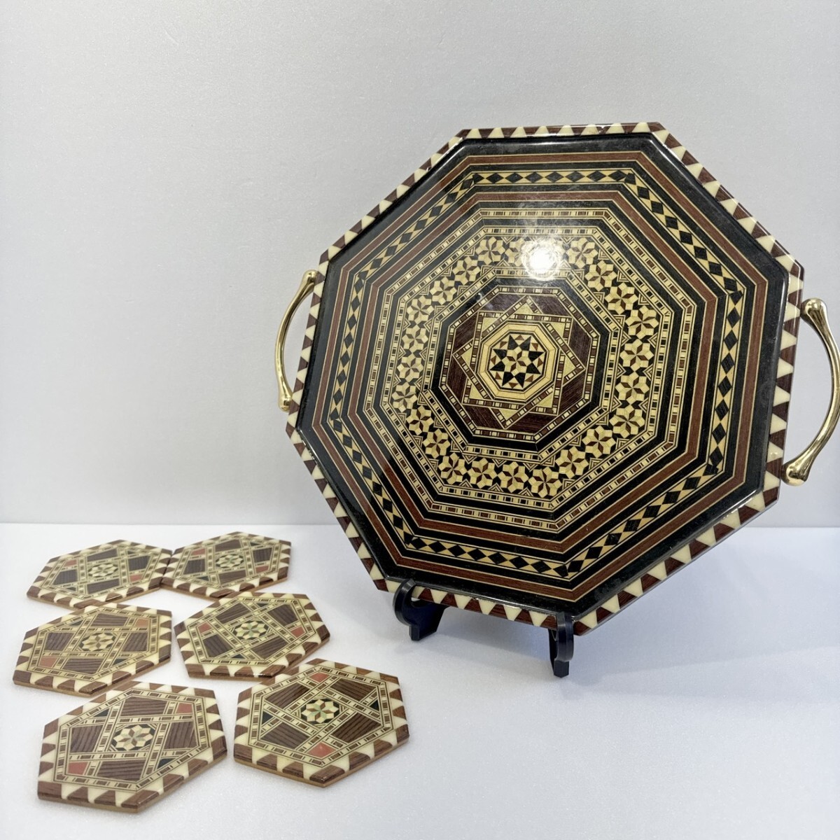 - スペイン 寄木細工 グラナダ 伝統工芸品 アンティーク レトロ ヴィンテージ ビンテージ お盆 トレー コースター