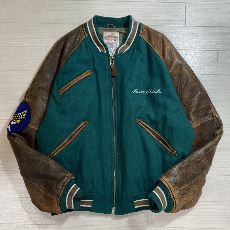 - AVIREX/アヴィレックス/アビレックス/レザーアーチワッペン×シニールワッペン/アームレザー/スタジアムジャンパー/スタジャン/内刺繍/L