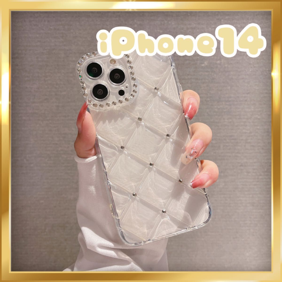 - 380 スマホケース iPhone14 パール シンプル 韓国 透明 クリア キルティング 可愛い お洒落 キラキラ TPU