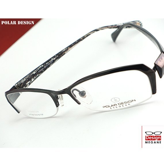 > 即決★眼鏡一式☆度入レンズ込★designメガネ★POLAR DESIGN Eyewear 純チタン素材 ハーフリム 度付き/度なし/伊達メガネ/ 【メガネ通販】