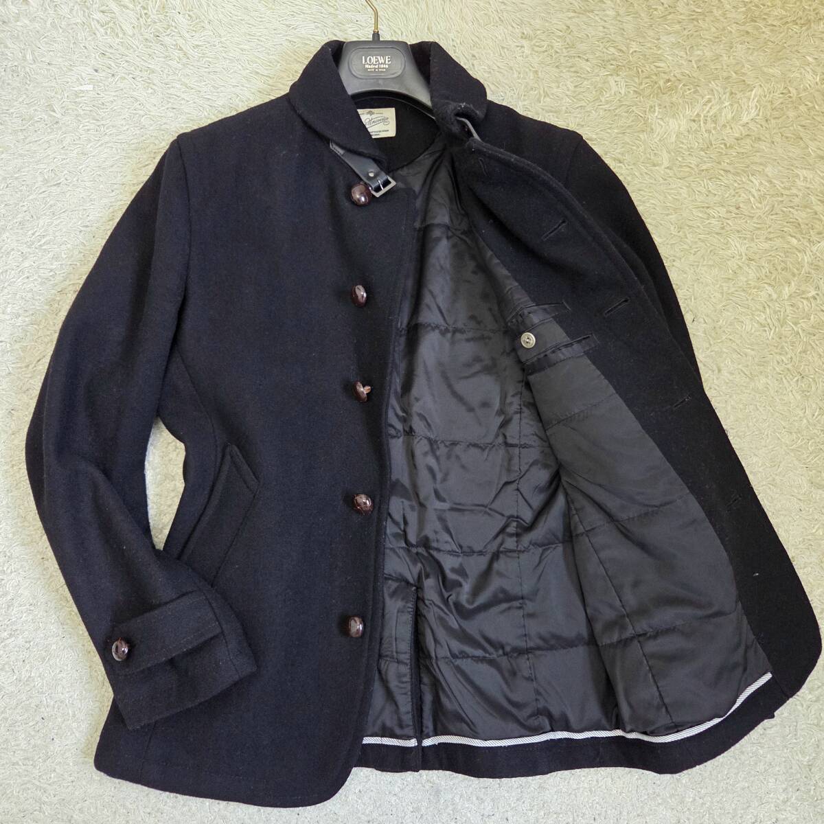 - ナノユニバース【お洒落な紳士】nano・universe ピーコート Pコート アウター 羽織 メルトンウール 中綿 くるみボタン 牛革 ブラック M