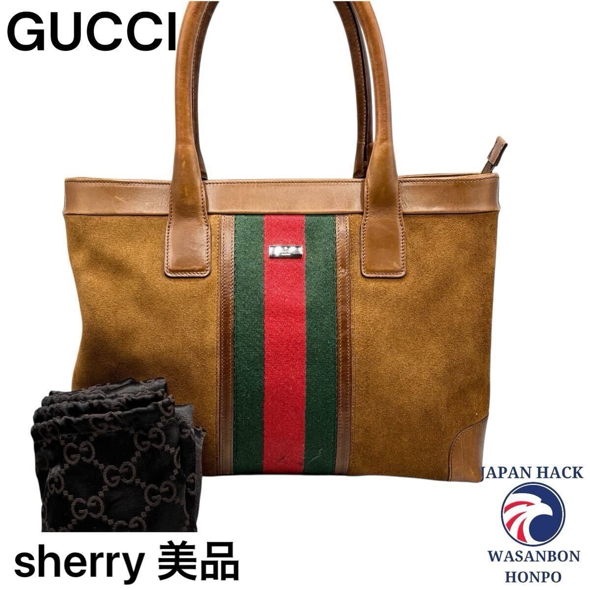 - ¥1〜 GUCCI 美品 シェリーライン トートバッグ レザー ブラウン バッグ ハンドバッグ made in Italy ブランド 保存袋付き