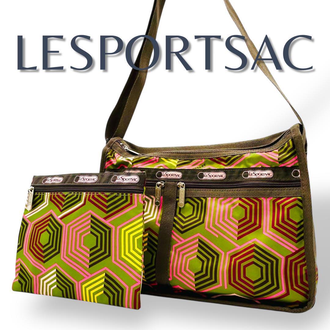- 【希少】LeSportsac レスポートサック 幾何学模様 お得セット ショルダーバッグ マルチカラー系 大人気モデル 希少 ポーチ付き