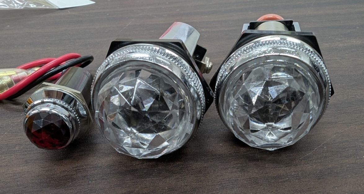 - 特大パイロットランプ クリア×2個セット 直径32mm 12v〜24v用BA15sソケット/G-18バルブ用 検)激レア レトロ デコトラ
