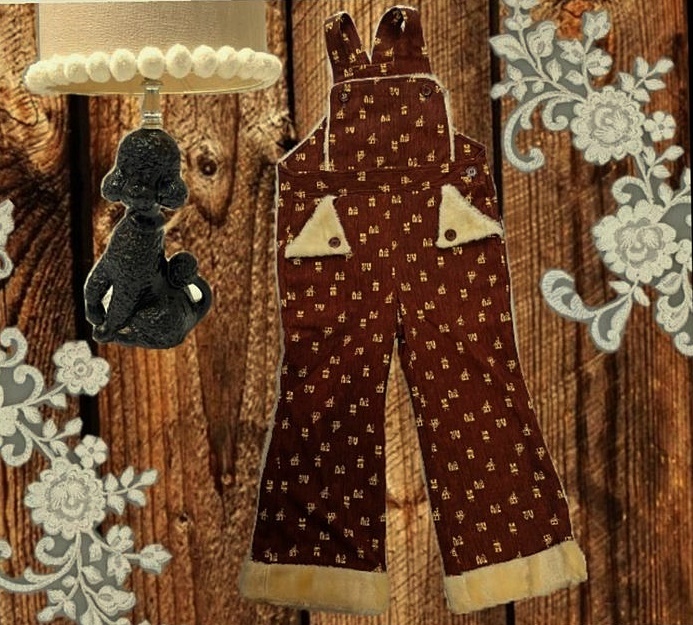 - Vintage ヴィンテージ レア希少/昭和レトロ 日本製 子供用 ベルボトム サロペット オーバーオール 未使用/家柄 ボア付き/60s 70s