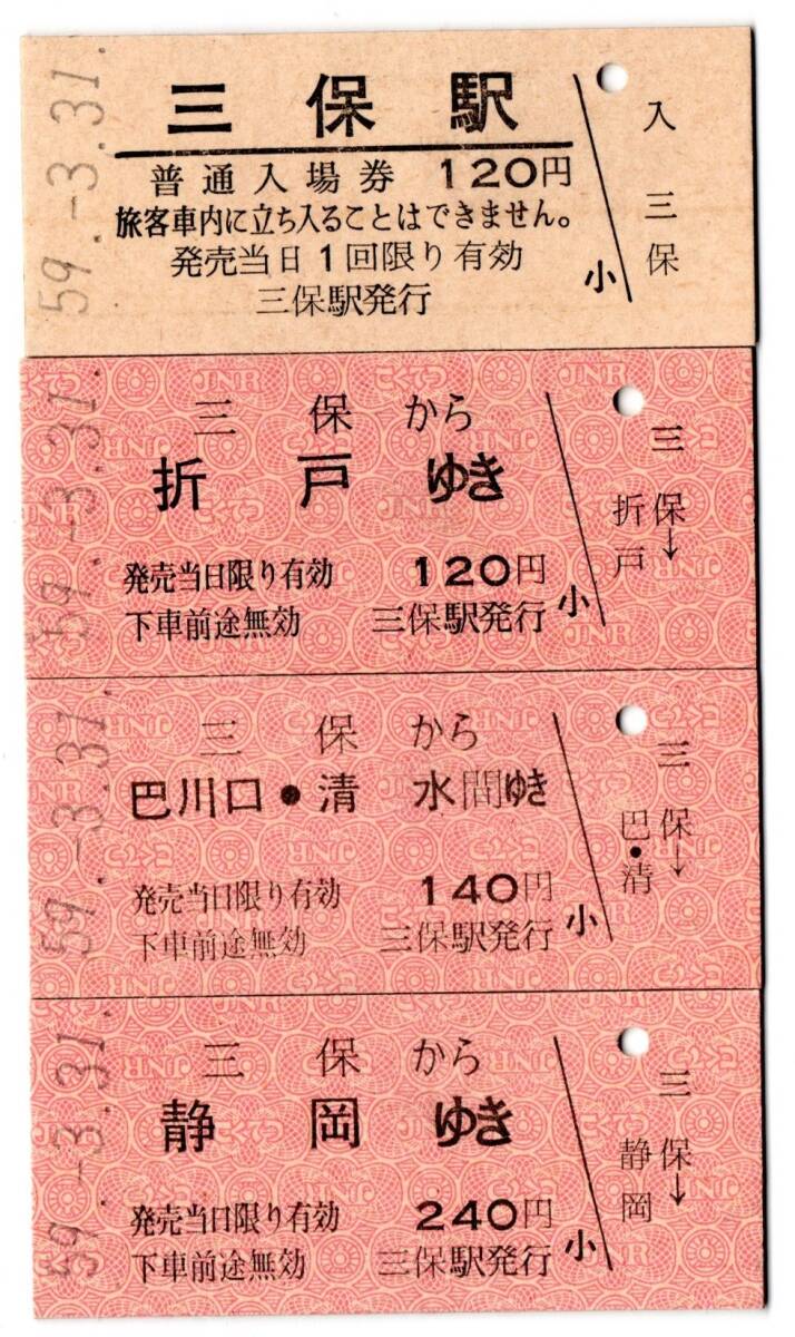 - 廃止最終日 清水港瀨 三保駅入場券&三保から乗車券3枚