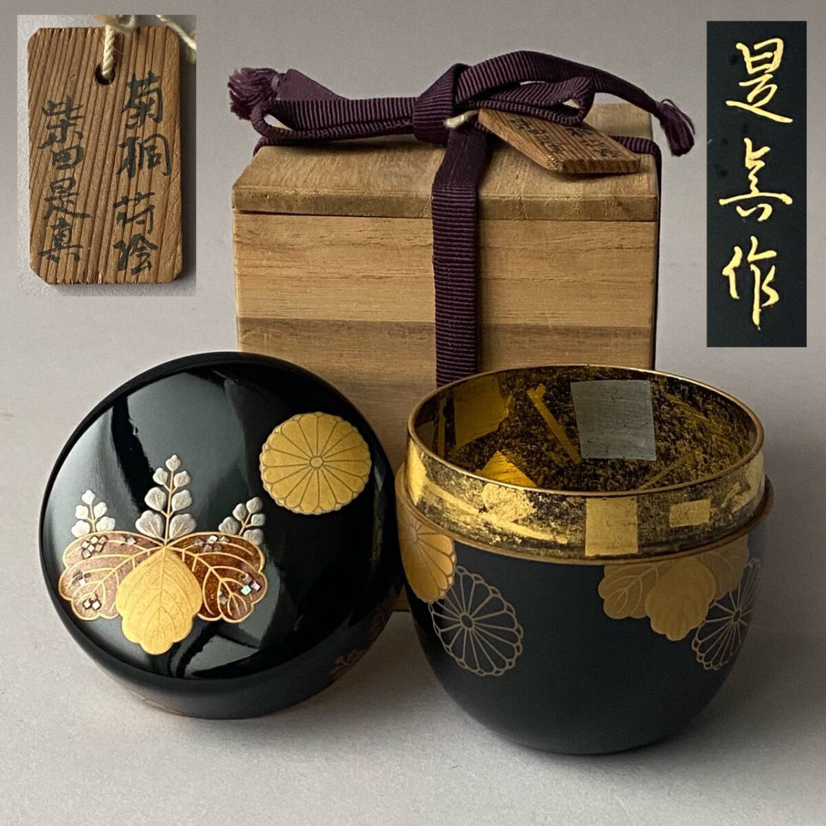 > 在銘【是貞作】菊桐蒔絵 内金銀箔散し 棗 合箱付き 茶道具 検) 五七桐紋 螺鈿 梨地 金銀蒔絵 柴田是貞 江戸末~明治初 骨董 煎茶 古美術