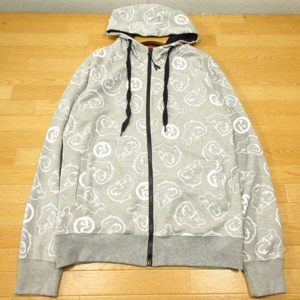 > ◎美品!ROLLING CRADLE ローリングクレイドル しまむら コラボ パーカー スウェット ストリート 総柄 メンズ グレー Mサイズ◆AA4881